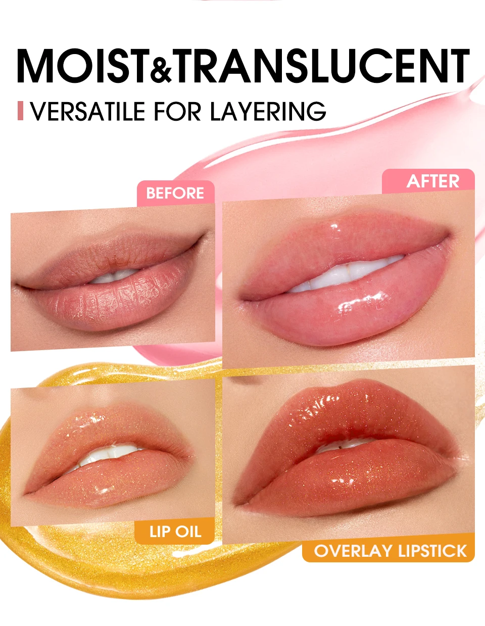-Naturally shiny,shimmering effect,plump and blur lip lines